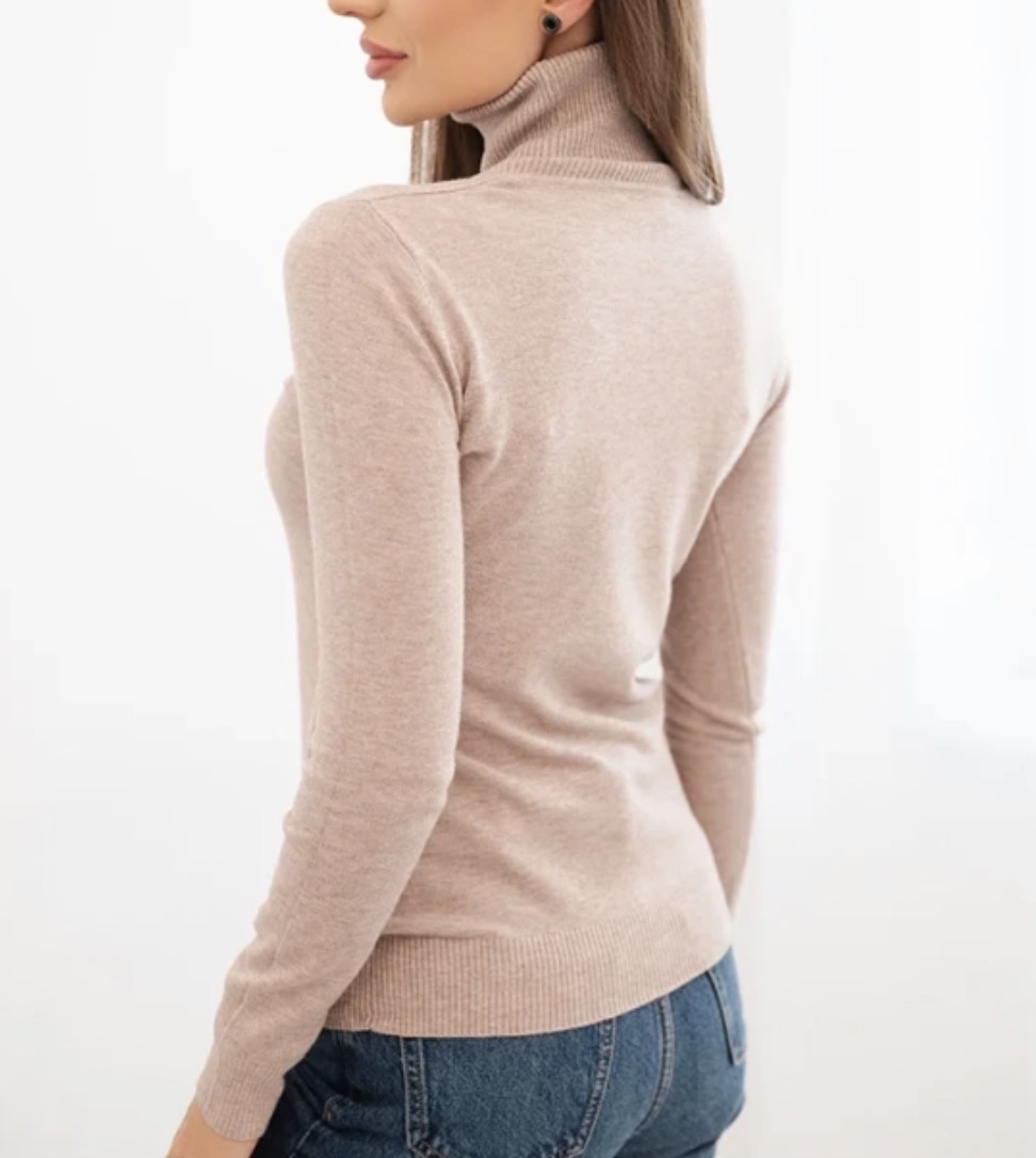 Stylowy sweter damski z golfem to klasyka, która nigdy nie wychodzi z mody. Wykonany z miękkiej mieszanki materiałów z dodatkiem wiskozy i modalu, gwarantuje komfort noszenia oraz świetne dopasowanie do sylwetki.